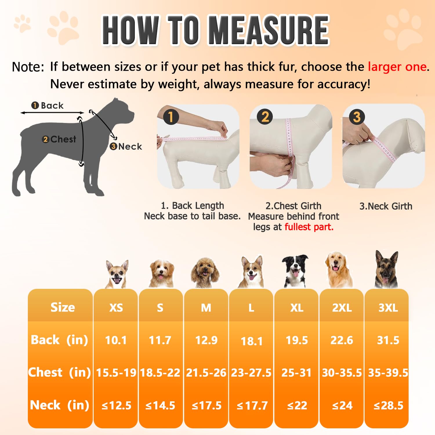 - 【Suitable for All Sizes and Breeds】 — Our dog raincoat comes in 7 sizes from XS to XXXL, suitable for small, medium, and large dogs ranging from 5 to 88 lbs. Please measure your pet's back length, neck girth, and chest girth and refer to the size chart before purchasing more tools.Note: If between sizes or if your pet has thick fur, choose the larger one.