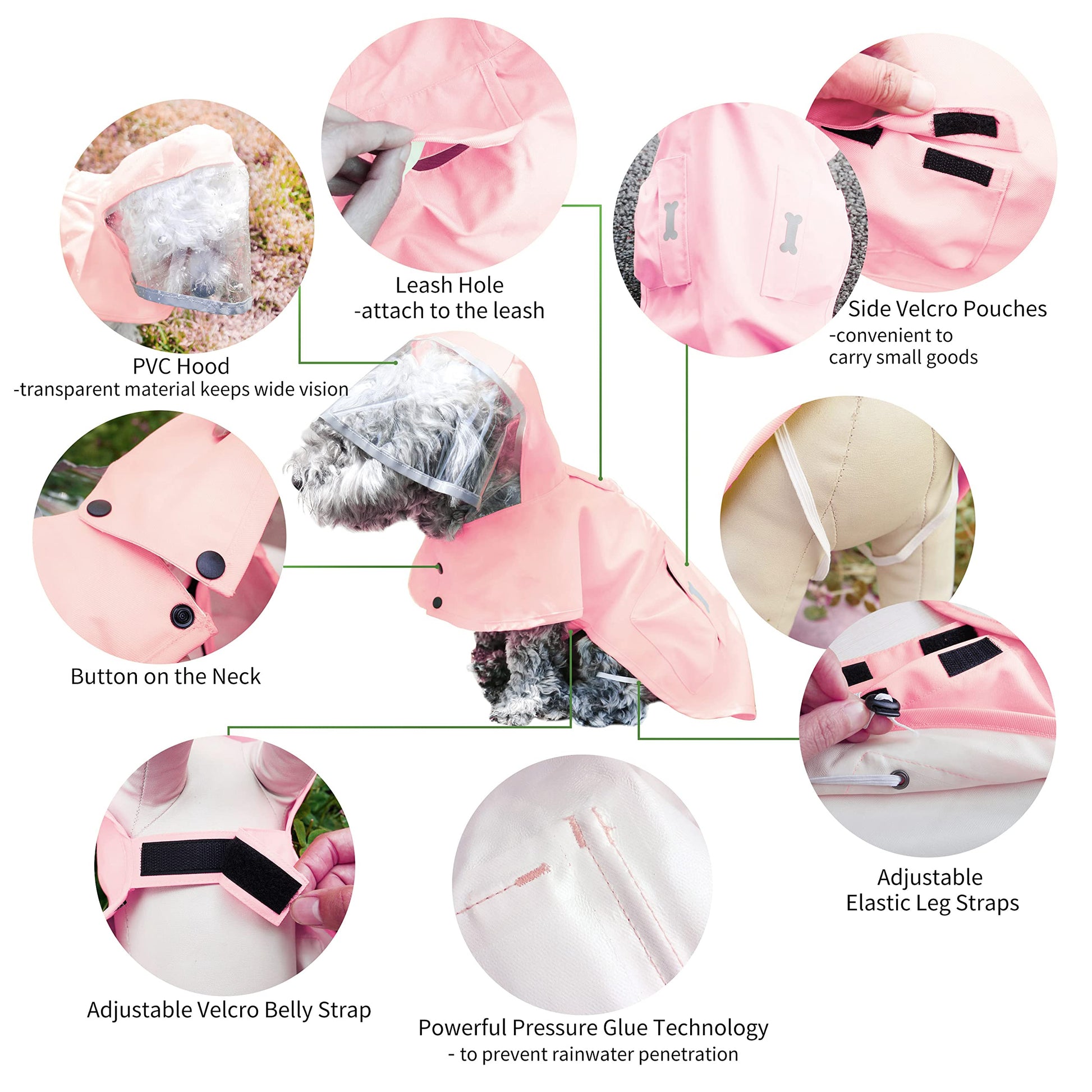 - HOOD AND BUTTON DESIGN: The raincoat hoodie is made of transparent PVC material that keep the pet head clean and dry in the rainy weather, making it easy for your pet to put on and off through the button.
